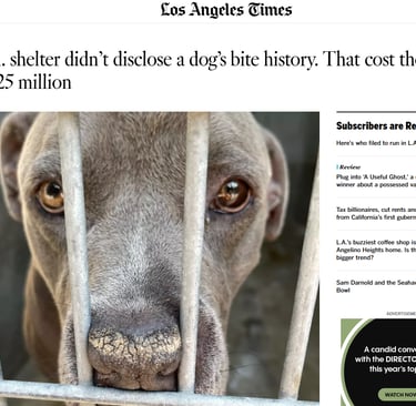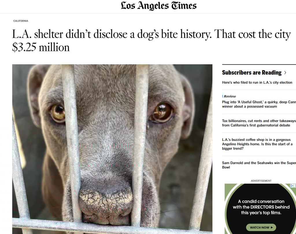 In the city of angels, we have a story about man's worst enemy and a shelter staffed by possessed demonic demons. This shelter sold a murder mutt to a woman who took it home where it quickly bit the face off of her mom. She takes the demonic four-legged serial killer back to the shelter. At this time the demonic staff willfully, maliciously and intentionally concealed and covered up the murder mutt's bite history. They advertised Cerberus as “I’m the best boy ever! I love to play. I love snuggling and I’ll let you put silly costumes on me,” said the caption on the Feb. 14, 2022.