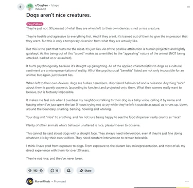 It is the opinion of many of the content creators of the above-mentioned sites that dog culture is extremely detrimental to communities, neighborhoods and the overall wellbeing of society in general. The writer also shares this opinion, and I will expand on this as this site is developed.