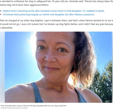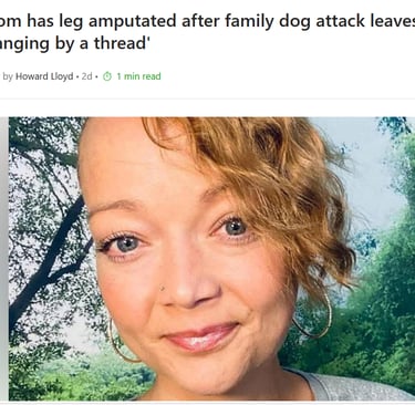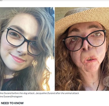 This thirty-five-year-old women was butchered on her own doorstep by her own worthless mutts. If not for the neighbors, she would have been murdered. One bit clean through her arm and broke the bone the other attacking her face. Man's worst enemy by far with not even a close second. Work for an advocate for dog free cities, communities and territories to be free of this horrible culture of domestic terrorists, both four legged and two legged.