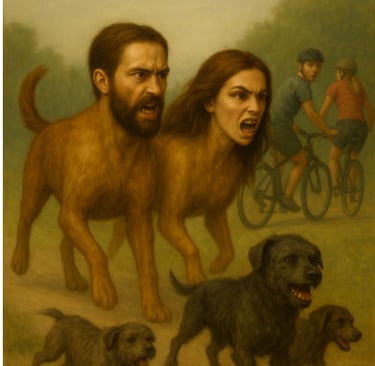 It is my opinion and observation that the presence of dogs, ownership of dogs fosters and promotes behavioral characteristics in their owners along the likes of aggression, revenge, hatred, isolation and the general decline of higher ethical standards of civility, camaraderie and cooperation between human beings. I know many dog worshipers who often speak of violence, getting even, are very competitive and have an attitude of stand my ground and protect my personal space at all costs. In other words, they take on the very characteristics of dogs themselves. Our society is violent, very violent at times and unpredictable, it is no coincidence that this violent uncivilized society is also a dog worshiping one, these two factions are most definitely related. The people that I know who own dogs and isolate with them, are all on psychotropic drugs, indicating that these people are suffering from some form of mental dysfunction and the presence of the dog is a crutch or bridge for them to use to treat their own mental problems. The ownership of the dog will only further and complicate what they are suffering from. These people long for and desire human friendship, companionship and romance, but they are unable to navigate that scenario and that is where the dog comes in.