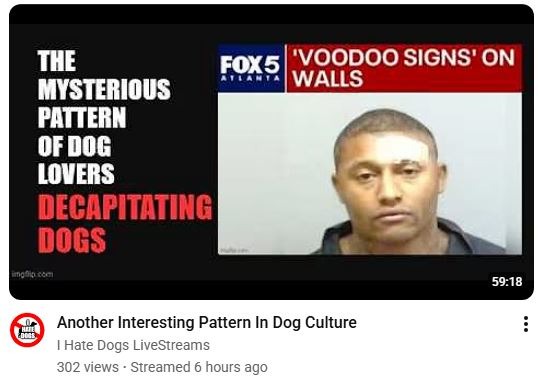 These channels are: I Hate Dogs and I Hate Dogs Livestreams, K-None-Official, Defenders of Humans and the Natural World, Worthless Mutts, Four-Legged Plague, Ranty McDogHate, Pit Bull Victim Awareness, Animal Uncontrol, and Sheepie's Web with another site on Reddit called Dogfree. There are others that are no less important, but these are the primary sites that I am familiar with.