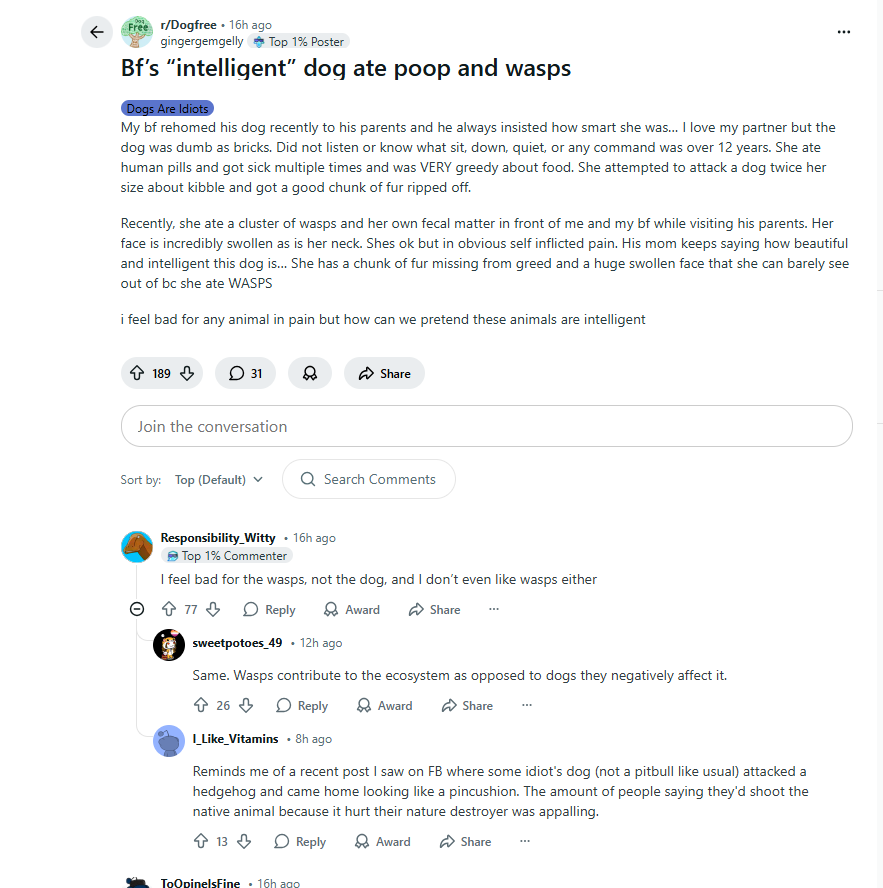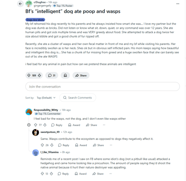 This worthless mutt ate a wasp's nest, now how is that for the genius of dogs?