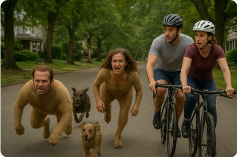 Eight-year-old boy riding his bike murdered by dogs. Owners cover up and tamper with the evidence. Mutt parasite fully installed in their brains.