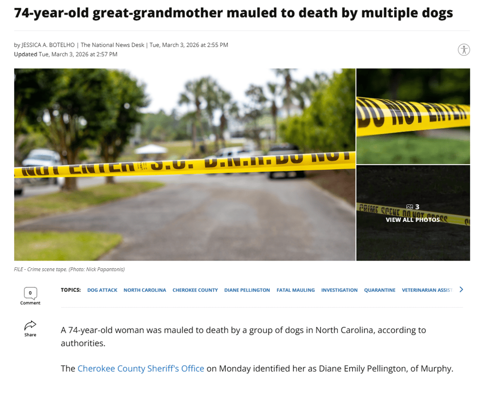 Man's worst enemy murders Grandma, third murder by mutts this week alone. Mutt culture, a cult of ritualistic human sacrifice.
