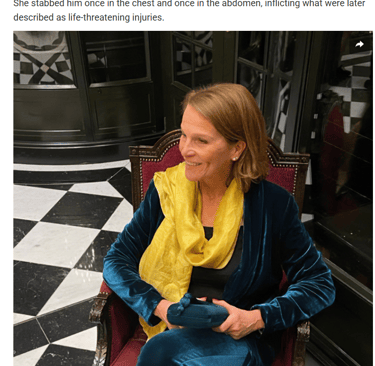 See this two-legged mutt woman below? Well, she stabbed her husband in the chest and abdomen, then when he was on the ground screaming for help, the crazy mutt bitch bit him on the arm just like the dog she is. That is a PERFECT illustration of the mutt mind brain parasite that has complete sway over her and has now morphed her into a violent two-legged dog, just like the four-legged plague. And the comments from the two-legged mutts are just as demonic. Dog free cities NOW.