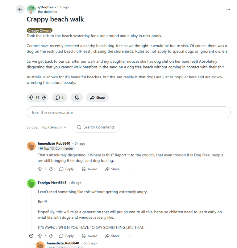 Dog owners, and culture has the right to destroy everything clean, decent and good for human beings.