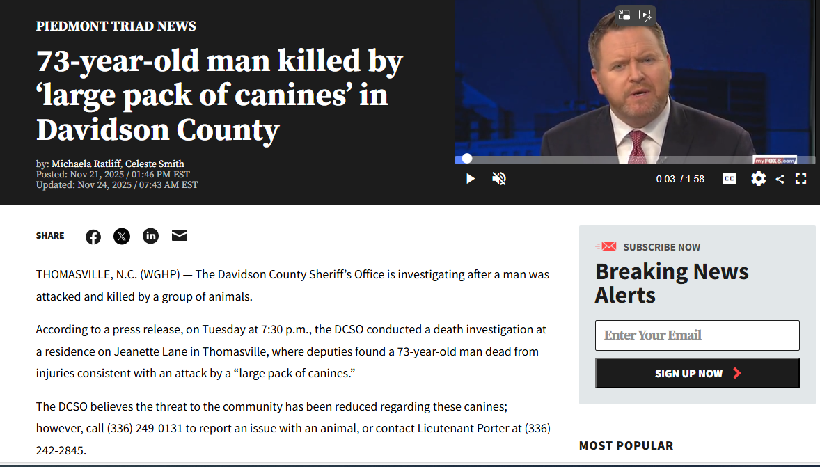 Seventy-three-year-old man murdered by man's worst enemy at his own home. Work for dog free cities, communities and territories to be free of diabolical satanism.