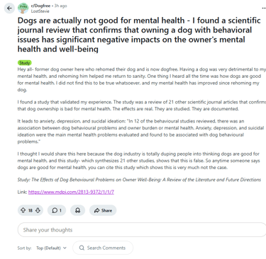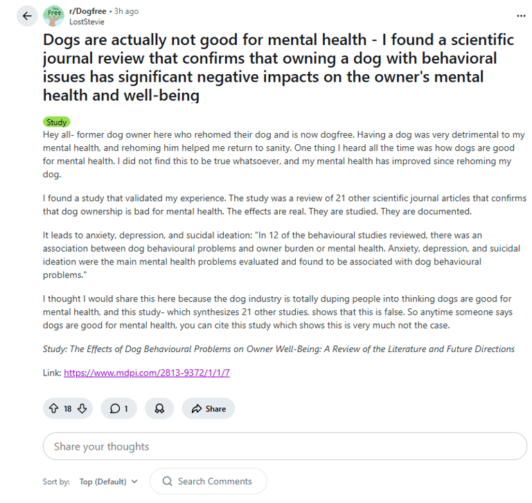 It is the writer's opinion that the percentage of human beings who suffer from this form of anxiety about dogs is far higher than what the screenshots suggest, far higher. And they do not need therapy, medication or any kind of cognitive readjustment. The corporation called the United States is going to provide these people living conditions free of dogs. It is quite normal to feel nervous around something that is nothing short of a weapon, an unpredictable weapon at that. The corporation called the United States caters to all kinds of groups, allow all kinds of protective classes for any group that demands it, and having the option and right to live free of dogs and dog culture is no different, no different at all.